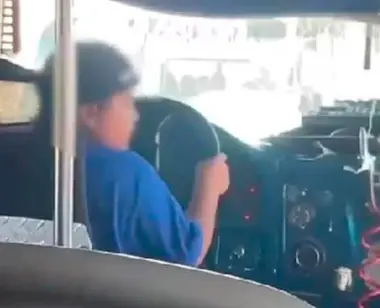 Durante la grabación se observa al niño haciendo un notable esfuerzo para asomarse por encima del tablero y mantener el control del vehículo. Su baja estatura obliga a que se estire para alcanzar los pedales y mirar hacia el camino.