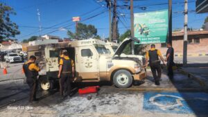 Se incendia camión de valores; tratan de rescatar los billetes que no se quemaron
