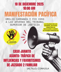 La asociación No Más Hijos Rehenes, con presencia activa en diversos municipios de Coahuila, anunció una manifestación pacífica para el...
