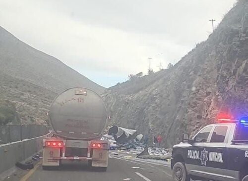 Cierran totalmente la carretera 57 por volcadura de tráiler en “Los Chorros”